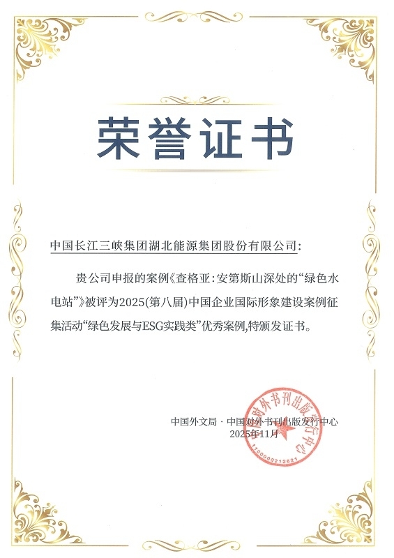 近日,由中國外文局主辦的2025中國企業全球形象高峰論壇在安徽合肥舉辦。論壇期間發布了中國企業國際形象案例,湖北能源以《查格亞:安第斯山深處的“綠色水電站”》成功入選 2025 (第八屆) 中國企業國際形象建設案例“綠色發展與ESG實踐類”優秀案例。